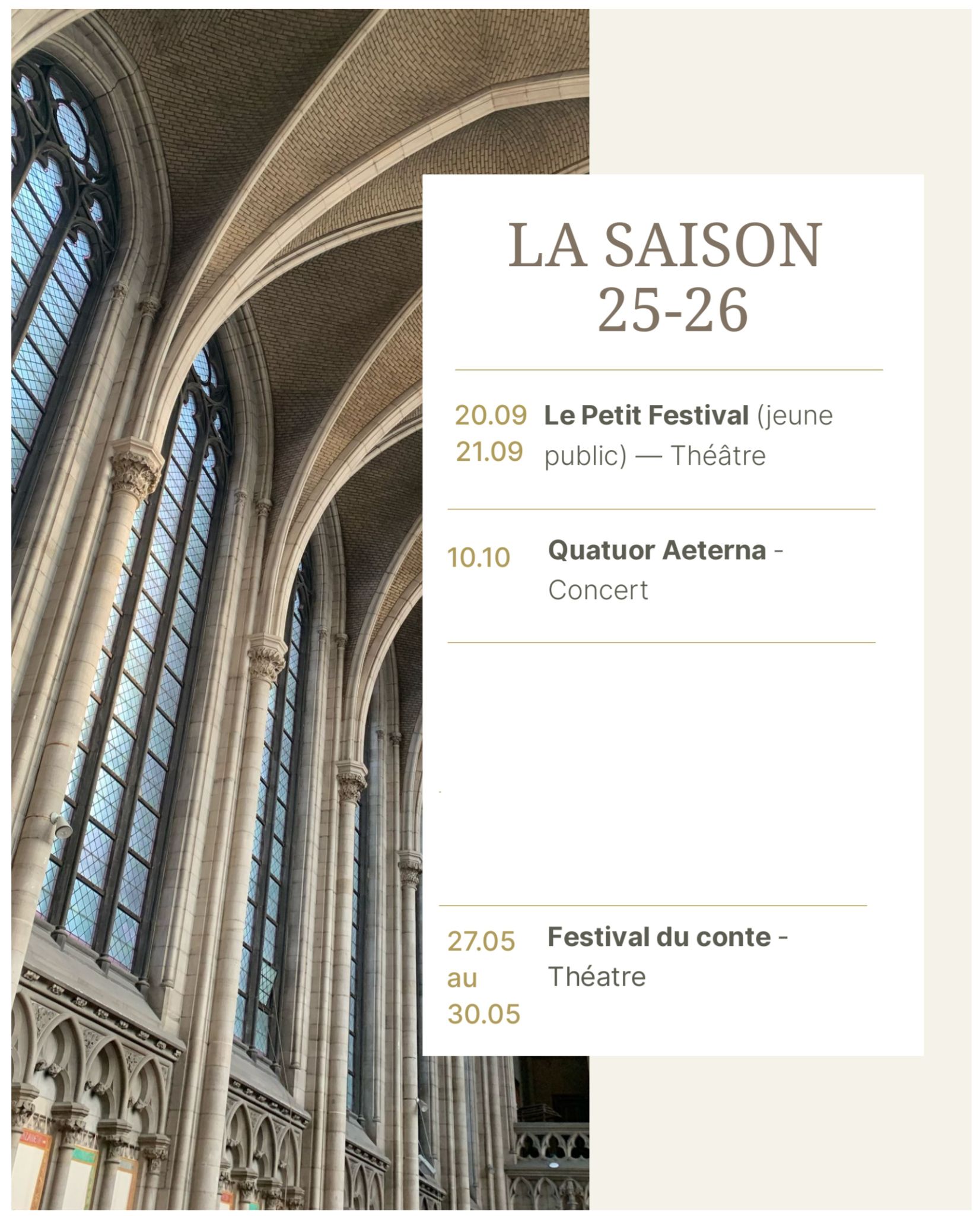 Nous avons le grand plaisir de vous prĂ©senter la saison 2025-2026 de notre jeune ASBL La Chapelle â Laboratoire culturel (LC2).